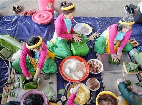 | Le 3e concours de confection du "banh chung" au Parc de l’histoire et de la culture nationales, à Hô Chi Minh-Ville, le 18 avril. |