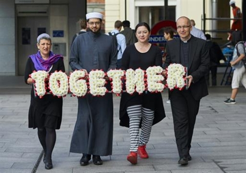 | Des leaders religieux posent pour promouvoir l'unité religieuse dans le cadre des commémorations des attentats de 2005, le 6 juillet à Londres. |