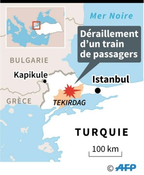 Le train transportant 360 passagers provenait de Kapikule, à la frontière bulgare, et se rendait à Istanbul quand six de ses voitures ont déraillé, à proximité du village de Sarilar. "L'accident s'est produit en raison de mauvaises conditions climatiques", a expliqué le gouverneur de la région Mehmet Ceylan.