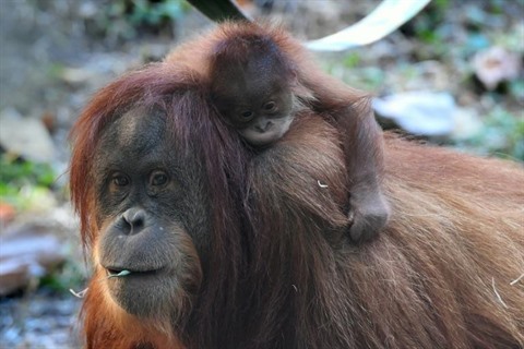 | Une mère orang-outan et son petit dans un parc zoologique à Budapest, le 20 octobre. |