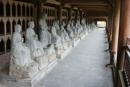 Le deuxième est celui du couloir abritant le plus de statues d’Arhat : 500. Ce couloir de la pagode Bai Dinh se trouve dans la province de Ninh Binh (Nord). Chaque statue mesure de 2-2,5m de haut et pèse entre 2 et 2,5 tonnes.