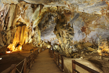 Le sixième record est celui de la plus longue grotte sèche, celle de Thiên Duong (Paradis) située dans le Parc national classé patrimoine naturel mondial de Phong Nha-Ke Bàng de la province de Quang Binh (Centre). Cette grotte a été découverte en 2005 par des experts de l’Association de spéléologie britannique. D’une longueur de 31,4 km pour une hauteur de 60 m et une largeur de 30 à 150 m, elle possède de magnifiques et spectaculaires stalactites et stalagmites, ainsi que de nombreuses images rappelant la culture de différentes régions du Vietnam telles que rizière en gradin ou maison rông (maison commune de certaines peuplades des hauts plateaux du Centre)...