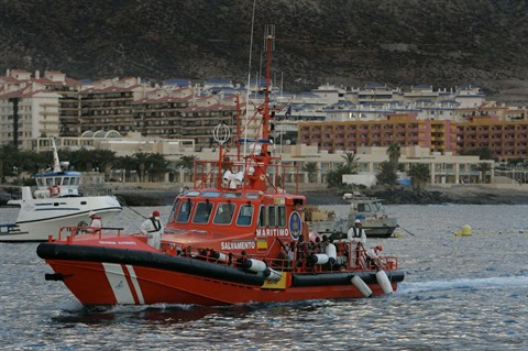 | Un bateau de sauvetage maritime ramène des migrants sauvés en mer au port de Los Cristianos, aux îles Canaries en 2009. |