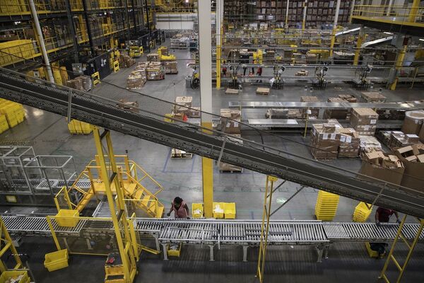 | Au centre de distribution d'Amazon à Peterborough, dans le Centre de l'Angleterre. |