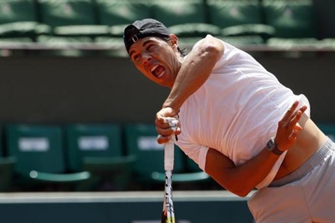 | Rafael Nadal à l'entraînement à Roland-Garros, le 22 mai à Paris, avant le début du tournoi du Grand Chelem parisien. |