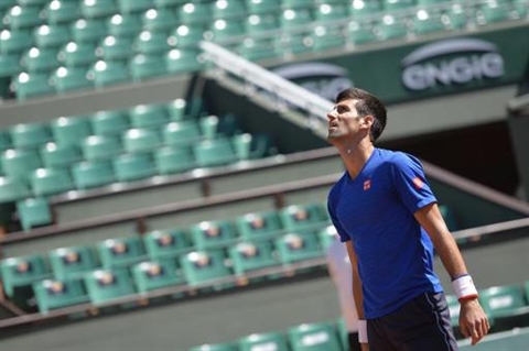 | Le Serbe Novak Djokovic, le 20 mai, à l'entraînement à Roland-Garros à Paris. |