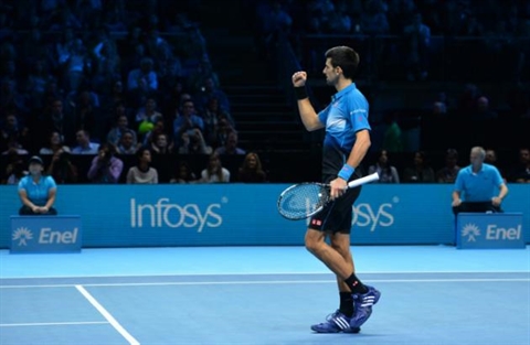 | Le Serbe Novak Djokovic après sa victoire sur l'Espagnol Rafael Nadal en demi-finale du Masters de Londres, le 21 novembre |