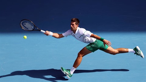 | Le Serbe Novak Djokovic face à l'Argentin Diego Schwartzman en 8e de finale de l'Open d'Australie, à Melbourne, le 26 janvier. |