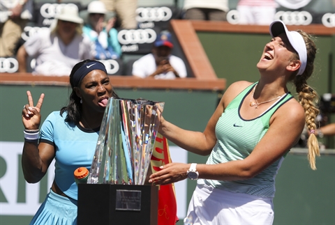 | Serena Williams (gauche) et Victoria Azarenka, le 20 mars à Indian Wells. |