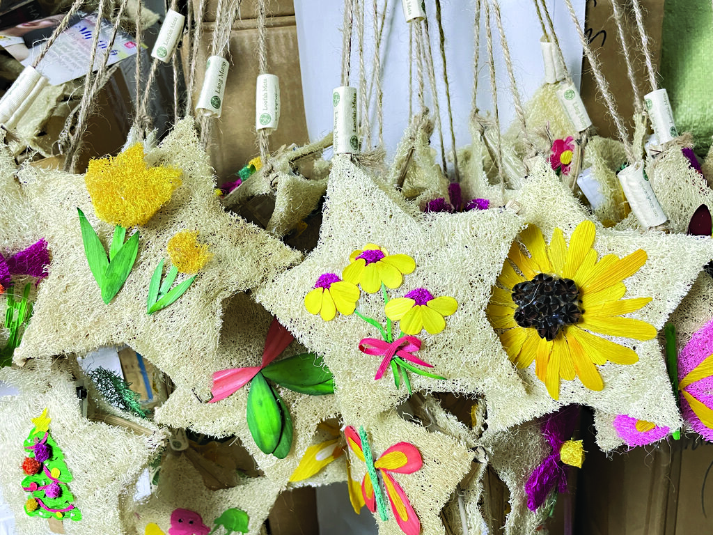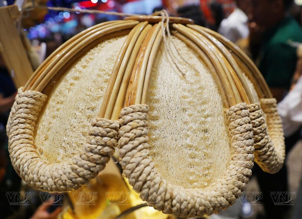 Dans son atelier de Dông Thap, M. Khoa met au point un processus rigoureux : les fruits sont nettoyés, séchés, débarrassés de leurs coques, puis traités pour éviter la moisissure. Ils sont ensuite pressés, découpés ou moulés selon les usages. “Chaque modèle possède une densité différente, explique-t-il. Certains sont plus durs, d’autres plus souples. Ainsi, les produits sont à la fois durables et naturellement flexiblese”. Cette maîtrise technique permet aujourd’hui de proposer une gamme très large, allant des éponges de bain à la décoration, en passant par les lampes, les accessoires en coton naturel, les semelles de chaussures ou encore les objets-cadeaux.