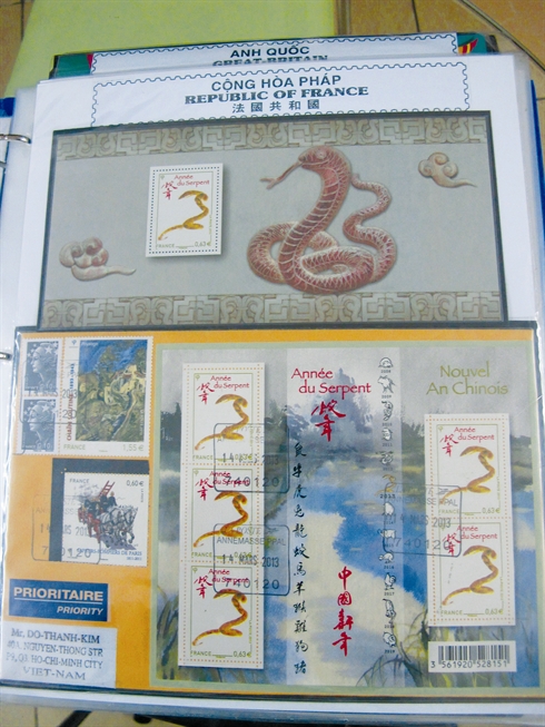 Les timbres de notre passionné sont classés et conservés soigneusement dans des albums. Leurs couleurs et formes restent ainsi intactes. Sa collection réunit ainsi tous les timbres de fin d’année qui existent sur les cinq continents. Par exemple, pour le Têt du Dragon 2012, pas moins de 68 pays en ont émis et il les possède tous. Il en va de même pour le Têt du Serpent 2013 où d’après ses sources, 50 pays ont diffusé un timbre à l’effigie du serpent, que naturellement il possède dans leur intégralité. Aujourd’hui, le Têt du Cheval arrive au galop et M. Kim a déjà placé en lieu sûr huit timbres d’autant de pays différents. Apparemment, on prévoit 50 timbres là aussi. Nul doute qu’il les traquera jusqu’au dernier, on peut lui faire confiance.
