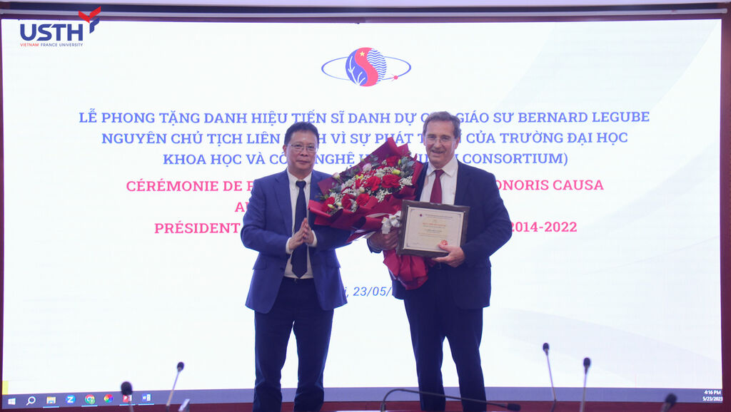 Le titre de Docteur honoris causa est attribué à Bernard Legube en reconnaissance de ses collaborations majeures dans le cadre de la coopération entre le CNRS et l’Académie des sciences et des technologies de Hanoï (VAST), ainsi que pour sa contribution significative à divers domaines.