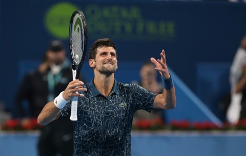 | Le Serbe Novak Djokovic réagit après sa victoire face au Hongrois Marton Fucsovics au tournoi de Doha, le 2 janvier. |