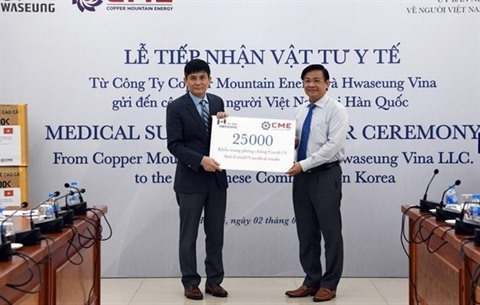 | Cérémonie de remise des dons de Copper Mountain Energy et de Hwaseung Vina LLC à la communauté des Vietnamiens en République de Corée, le 2 juin. |