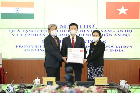 En avril 2020, l'Association d'amitié Vietnam - Inde a remis au peuple indien 100.000 masques antibactériens. Pour l’heure, dans le contexte d'aggravation de la pandémie en Inde, l'association a mobilisé le groupe Vingroup pour faire don de 100 respirateurs, d'une valeur totale de plus de 10 milliards de dôngs, au peuple indien.
