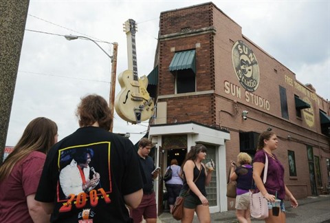 À une dizaine de minutes de Graceland, un guide au Sun Studio explique aux visiteurs qu’ils se trouvent dans un lieu "sacré et béni". C’est dans le sous-sol que Presley a enregistré son premier tube, That’s All Right en 1954.
