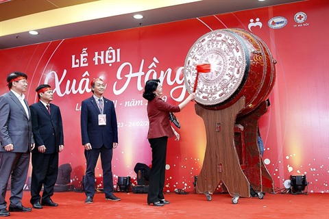 | La vice-présidente de la République, Dang Thi Ngoc Thinh, a battu le tambour pour ouvrir la Fête du printemps rouge 2019. |