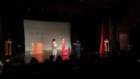 | Les jeunes amoureux du théâtre du lycée Alexandre Yersin sur scène. |