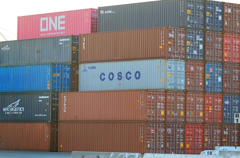 | Des conteneurs de marchandises chinoises au port américain Long Beach, Los Angeles, en août 2018. |