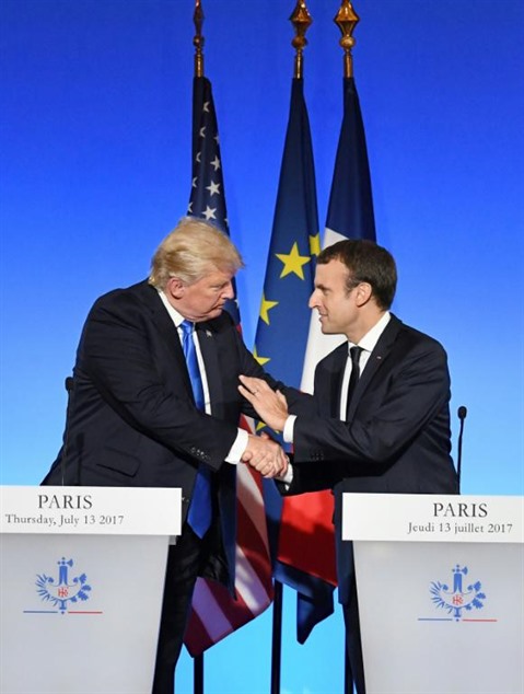Les présidents français Emmanuel Macron (droite) et américain Donald Trump, le 13 juillet à Paris. Photo : AFP/VNA/CVN |