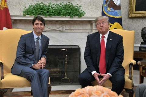 Le Premier ministre canadien Justin Trudeau et le président américain Donald Trump à Washington, le 11 octobre. Photo : AFP/VNA/CVN |
