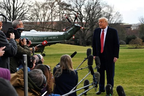 | Le président américain Donald Trump parle aux medias dans les jardins de la Maison Blanche à Washington D.C. le 28 février. |