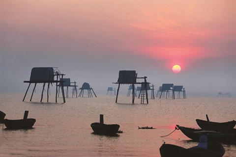 Le soir, c’est le moment où la vie des pêcheurs commence. Dès le reflux de 24h00, le pêcheur allait le long de la ligne d’horizon de l’eau jusqu’à 06h00 du matin. Sans bruits, sans disputes, les habitants étaient doux comme la mer, ils arrivaient aux champs de palourdes, ou grimpaient sur leurs miradors de garde qui étaient construits sur l’eau. À l’intérieur de chaque mirador, j’ai vu l’espace de la vie quotidienne des pêcheurs, quelques bols de riz, quelques marmites, une couverture pour les nuits froides, un éventail en papier quand il faisait chaud. Tous étaient très simples, mais je sais qu’ils les aiment comme leur deuxième maison.