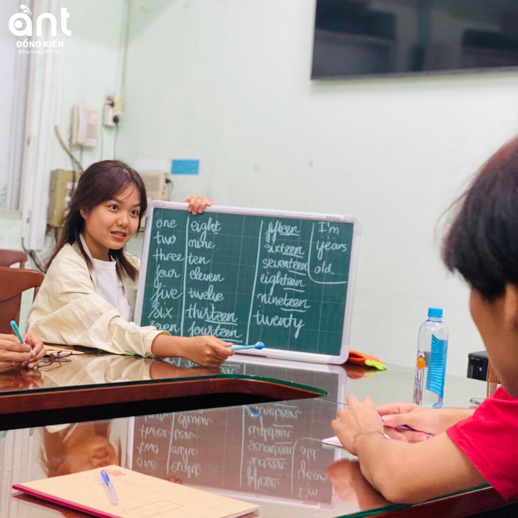Là-bas, une trentaine d’enfants suivent des cours d’anglais de communication dispensés par les jeunes volontaires de Đồng Kiến. La méthode d’enseignement n’est pas académique ou ennuyeuse, mais associe jeux, chansons et activités de groupe, permettant aux enfants d’apprendre tout en s’amusant.