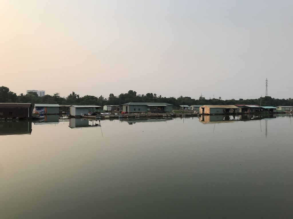 | L’élevage aquatique en radeaux et cages sur une branche du fleuve Dông Nai. |