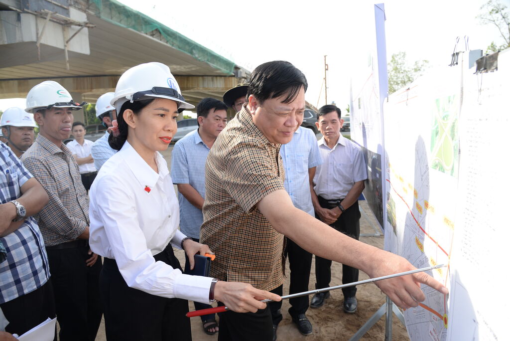 | Pham Thành Ngai, vice-secrétaire du Comité provincial du Parti et président du Comité populaire de la province de Đông Tháp, inspecte un projet de point. |