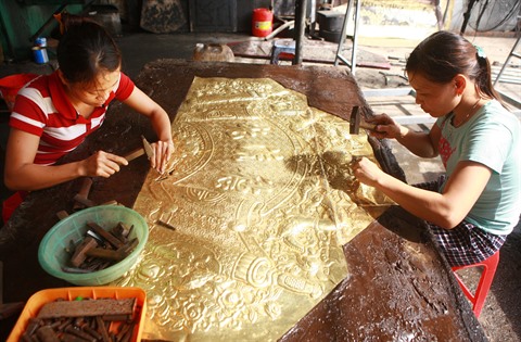 | La sculpture sur le bronze au village de Dông Xâm, province de Thai Binh (Nord). |