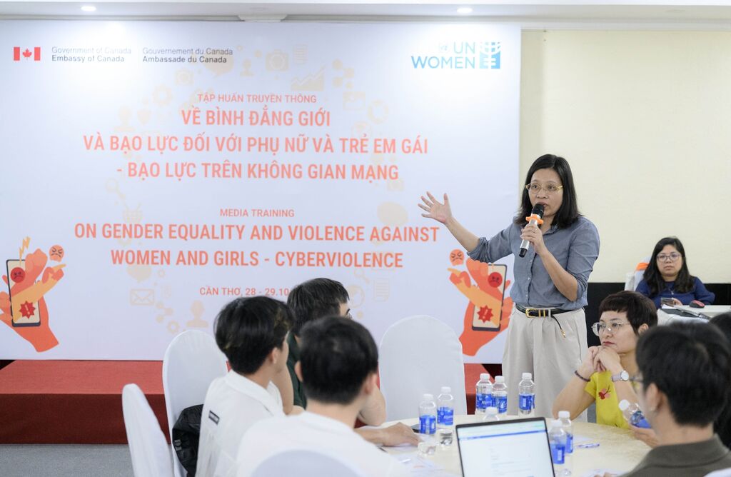 | Une formation sur la communication concernant l'égalité des sexes, la violence en ligne envers les femmes et les filles, organisée en octobre 2024 par UN Women dans la ville de Cân Tho (Sud). |