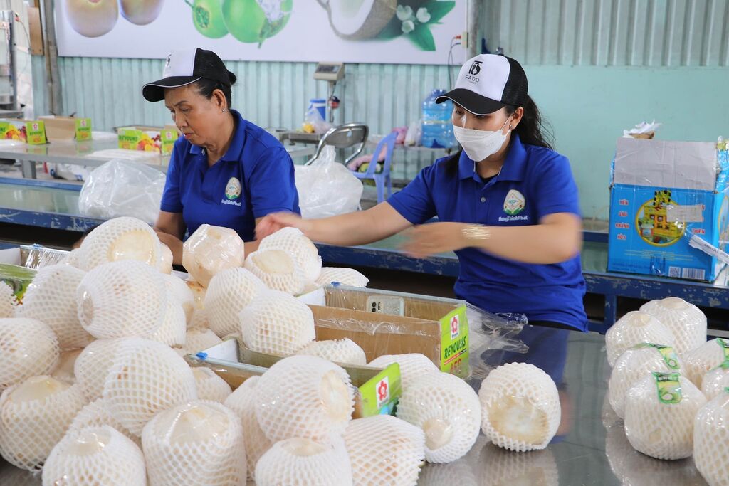 | Emballage de noix de coco fraîches pour l'exportation dans la coopérative Hung Thinh Phat, district de Cho Gao, province de Tiên Giang (Sud). |