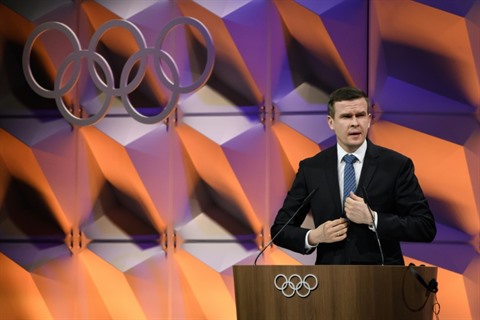 | Le président de l'Agence mondiale antidopage (AMA), Witold Banka, s'exprimant devant la session du CIO à Lausanne, le 10 janvier. |