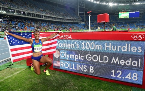 | La hurdleuse Américaine Brianna Rollins à l'issue de son sacre olympique à Rio, le 17 août 2016. |