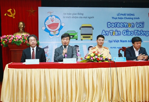 | Lancement du programme de sensibilisation des enfants à la sécurité routière, intitulé "Doraemon et la sécurité routière au Vietnam", le 20 avril à Hanoi. |