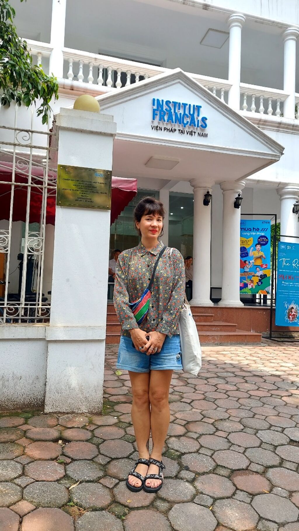 | Dorothée pose devant le siège de l'Institut français de Hanoï. |