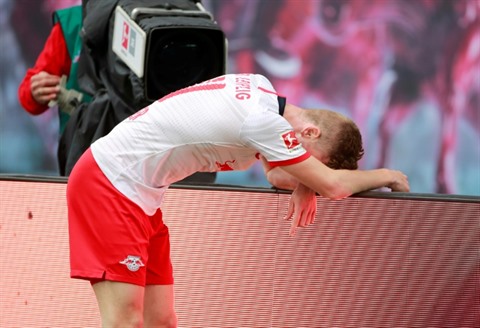 | L'attaquant de Leipzig, Timo Werner, dépité après le nul concédé face à Paderborn, à domicile, le 6 juin. |