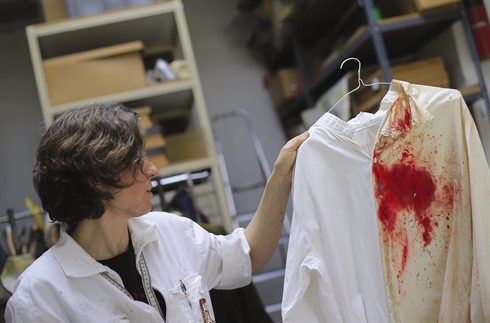 «Si quelqu’un se fait tirer dessus, dans une bagarre par exemple, et arrive dans la scène suivante couvert de sang, c’est nous», explique Heike Schulte. «Nous teignons les rubans pour les couturières, nous peignons les chapeaux, nous transformons des chaussures noires en chaussures vertes et vice-versa», poursuit-elle.
