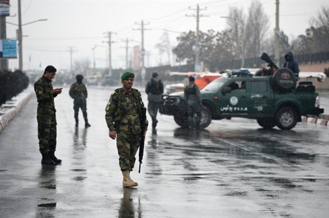 | Des membres de forces de sécurité afghanes sur les lieux d'un attentat à Kaboul, le 29 janvier. |