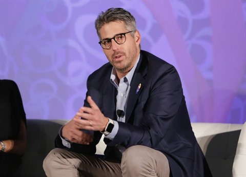 | Le président de Los Angeles-2024 Casey Wasserman lors du Sommet sur la fondation LA84, le 27 octobre 2016 à Los Angeles. |