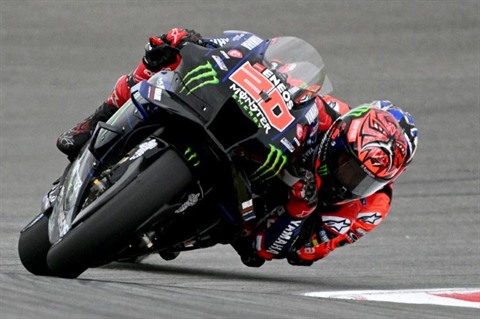 | Le Français Fabio Quartararo, lors du Grand Prix MotoGP du Portugal, le 24 avril sur le Circuit International d'Algare à Portimao. |