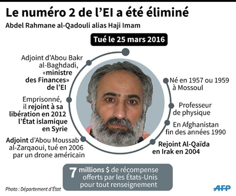 Fiche sur Abdel Rahmane al-Qadouli, le "ministre des Finances" de l'EI, tué par les Américains. Photo : AFP/VNA/CVN |