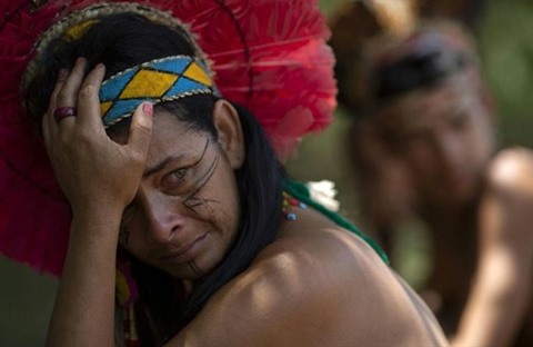 | Une femme de la tribu Pataxó désespérée après la rupture du barrage de Bruamdinho dans le Minas Gerais, le 30 janvier 2019. |