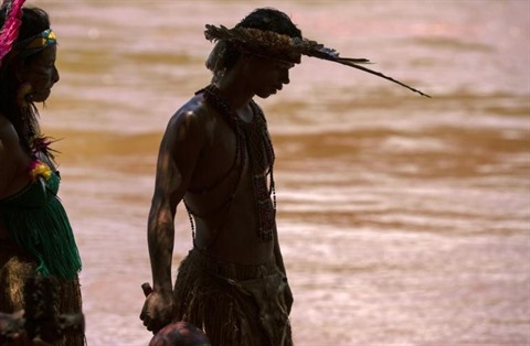 "On nous a retiré une partie de notre réserve, on a tué une partie (d'entre nous), mais nous sommes un peuple qui résiste et nous n'allons pas partir d'ici. Nous allons continuer, même si le fleuve est mort. La nature dépend de nous, nous devons la préserver", affirme le cacique Hayo Pataxo Ha-ha-hae, qui porte une imposante coiffe de plumes.