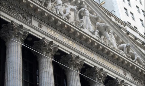 | La façade du New York Stock Exchange à Wall Street (New York), le 23 mars 2021. |