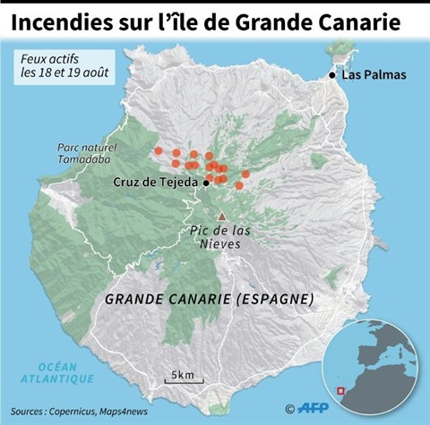 >>Espagne: incendie "circonscrit" sur l'île de Grande Canarie