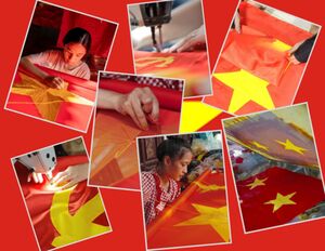 Les drapeaux rouges balisent sur les rizières en terrasses vertes à Vân Hô