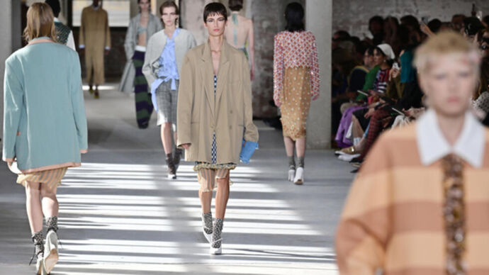 Fin février à Paris, Dries Van Noten s'est distingué avec une collection femme automne-hiver 2024 marquée par une touche de rêve coloré, en pastel et silhouettes amples comme des vêtements de nuit et des sacs doux comme des peluches, le tout présenté dans un chantier de construction parisien.