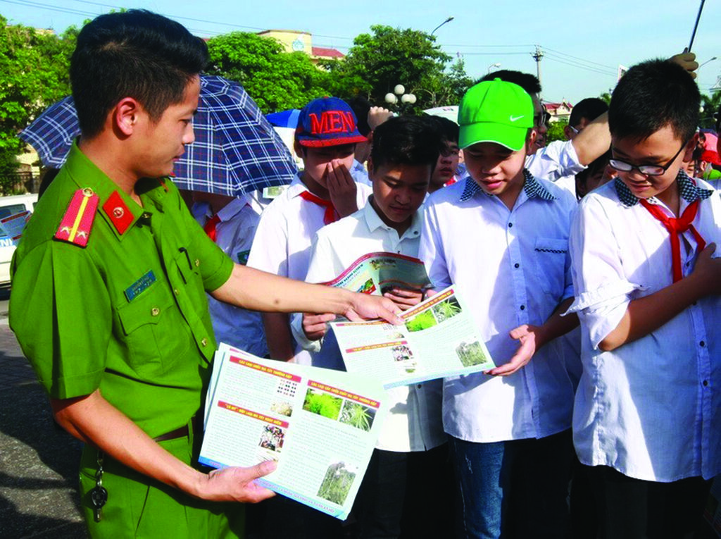 | Distribution de tracts pour sensibiliser les jeunes aux conséquences négatives des drogues à Bac Giang (Nord). |